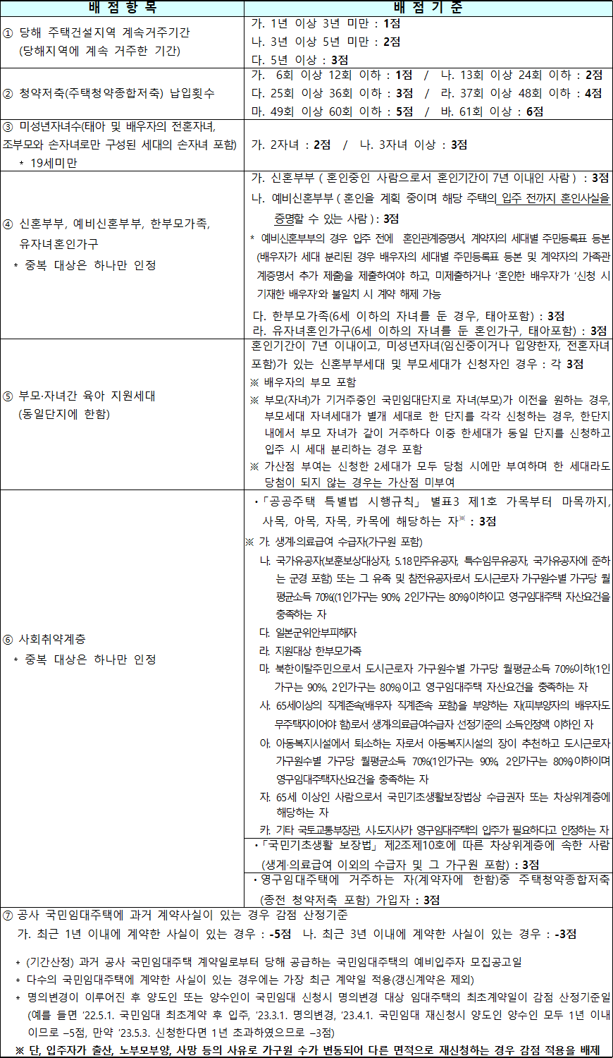 ④ 서류제출대상자는 순위 및 배점에 따라서 모집호수의 통상 1.5 ~ 2배수가 선정되며, 자격검증 후에 적격자가 모집인원 초과 시 배점이 낮은 신청자는 탈락할 가능성이 있습니다.