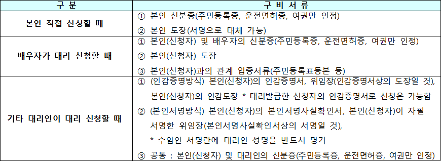③ 일부 서류의 경우 해당 기관에서 발급시 약 1주일의 기간이 소요되므로 서류 제출 1주일 전 관련 서류 발급 요망