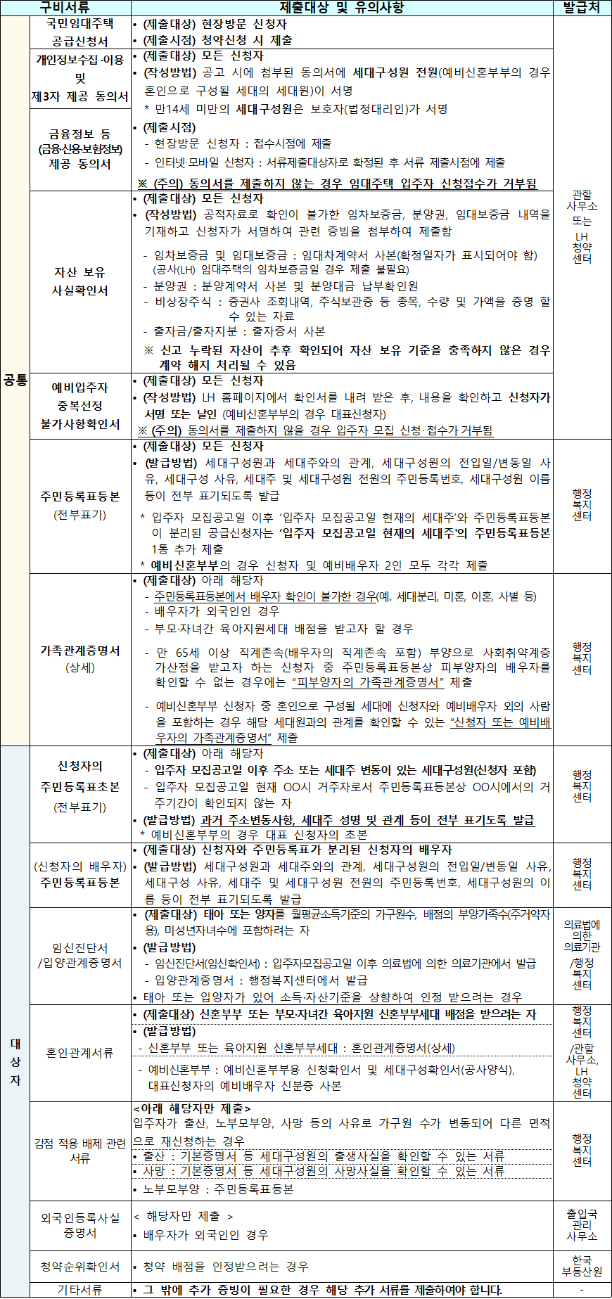 ① 아래의 제증명서류는 입주자 모집공고일 이후 발급분에 한함